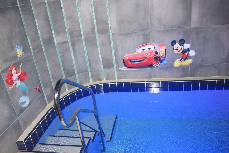 Swiming poolsThe dimensions of the swimming pool: 25 m x 10 m. Depth: 1,6 m – 3,5 m. The dimensions of the swimming pool for aqua aerobics: 8,2 m x 8,2 m. Depth: 1,2 m. The dimensions of the swimming pool for baby: 5 m x 1,5 m. Depth: 1,2 m.